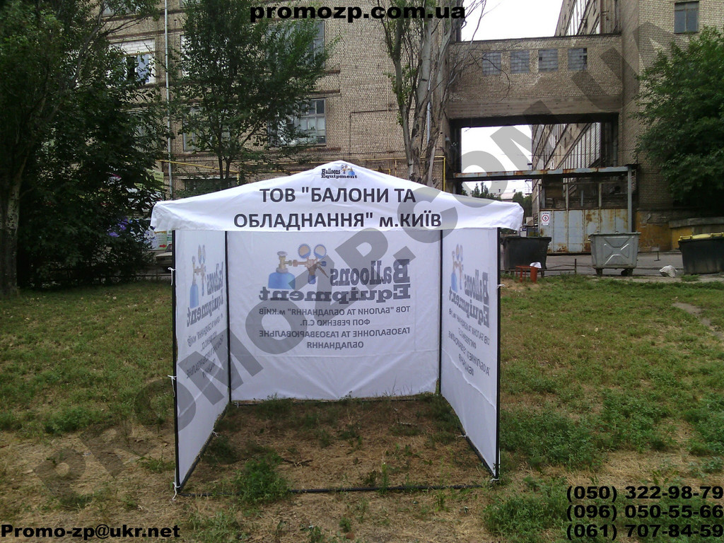 Палатка для торговли 2х2 метра с печатью логотипа. Купить палатку для торговли в Киеве с бесплатной доставкой. Всегда на складе в наличии в следующих цветах: белый, синий, желтый, красный и зеленый.